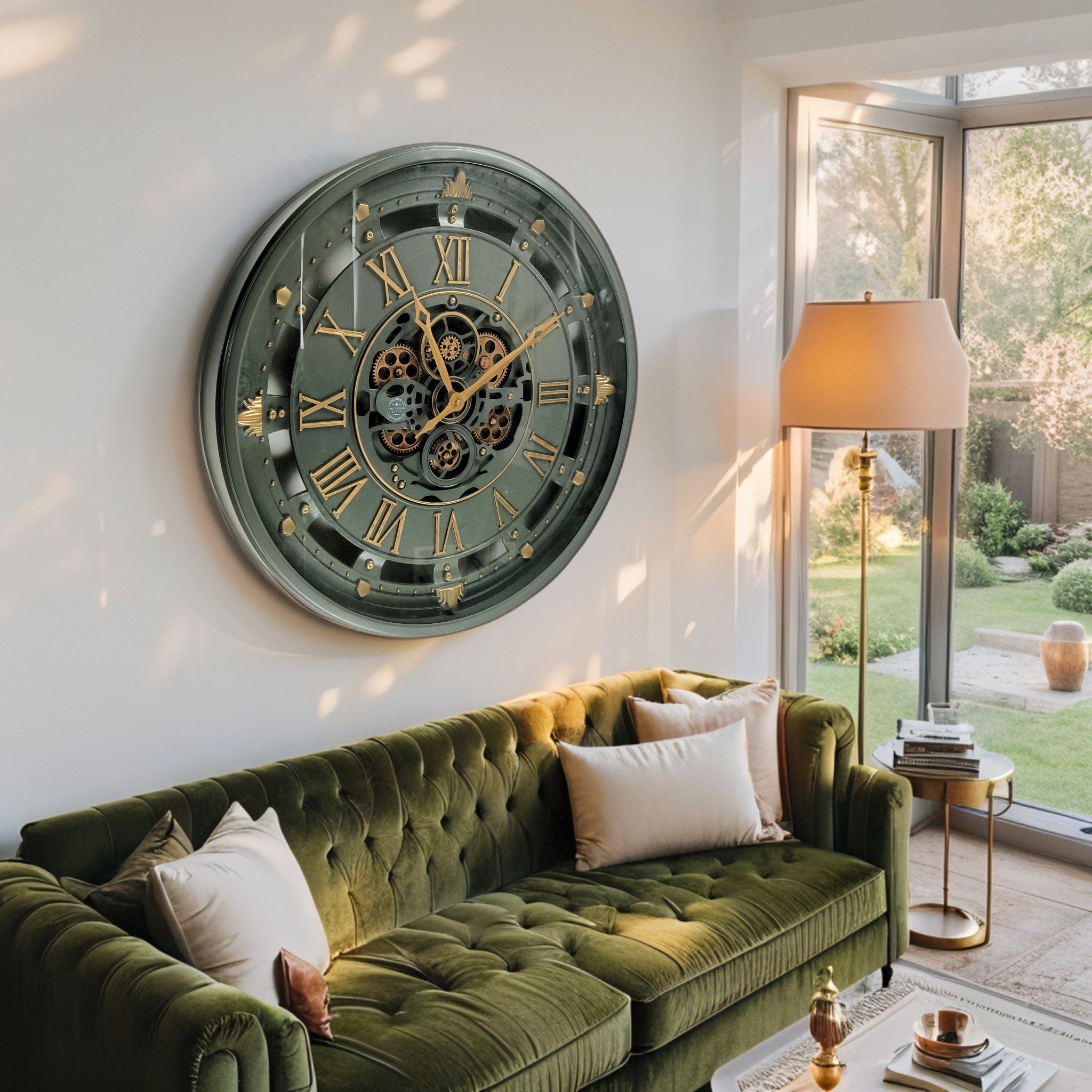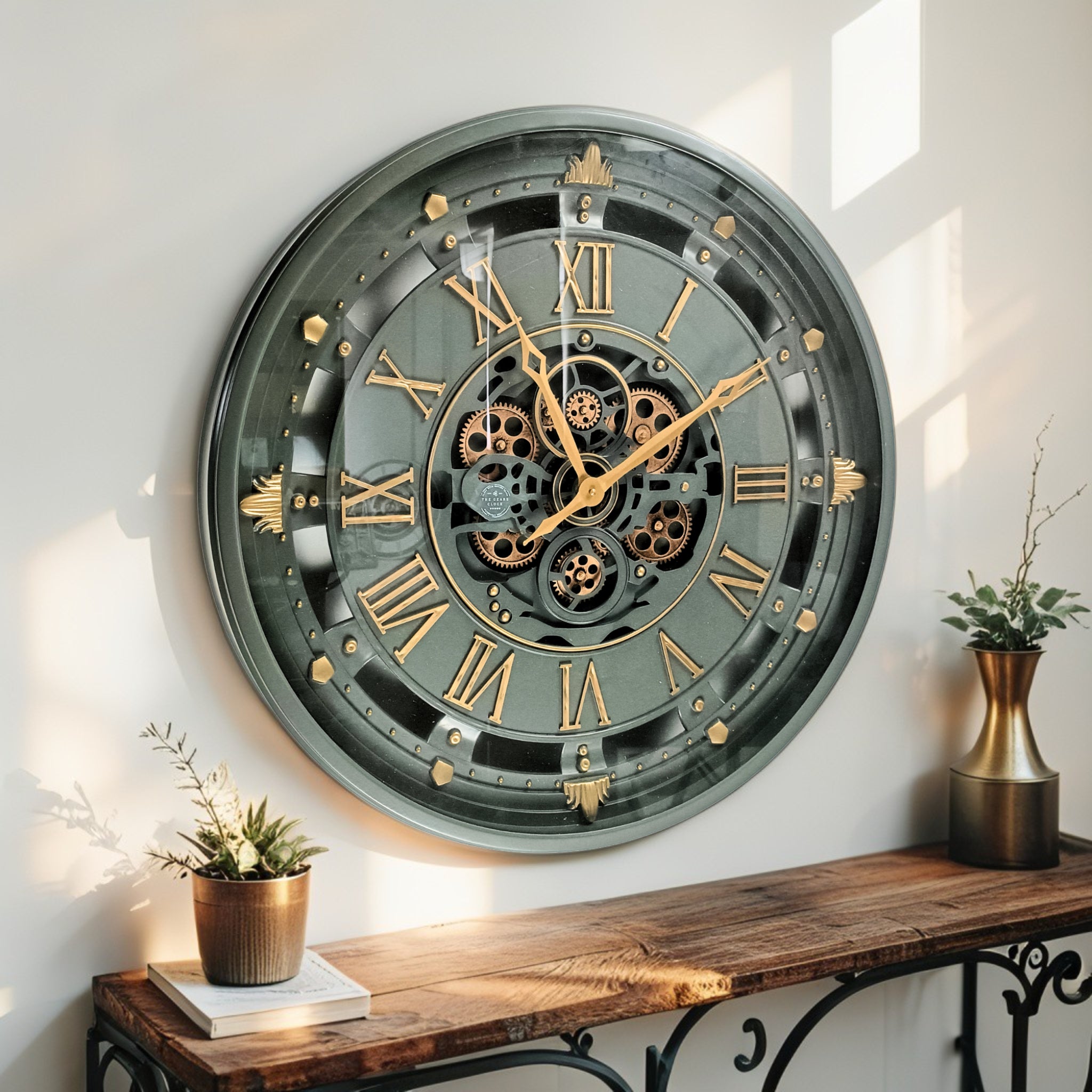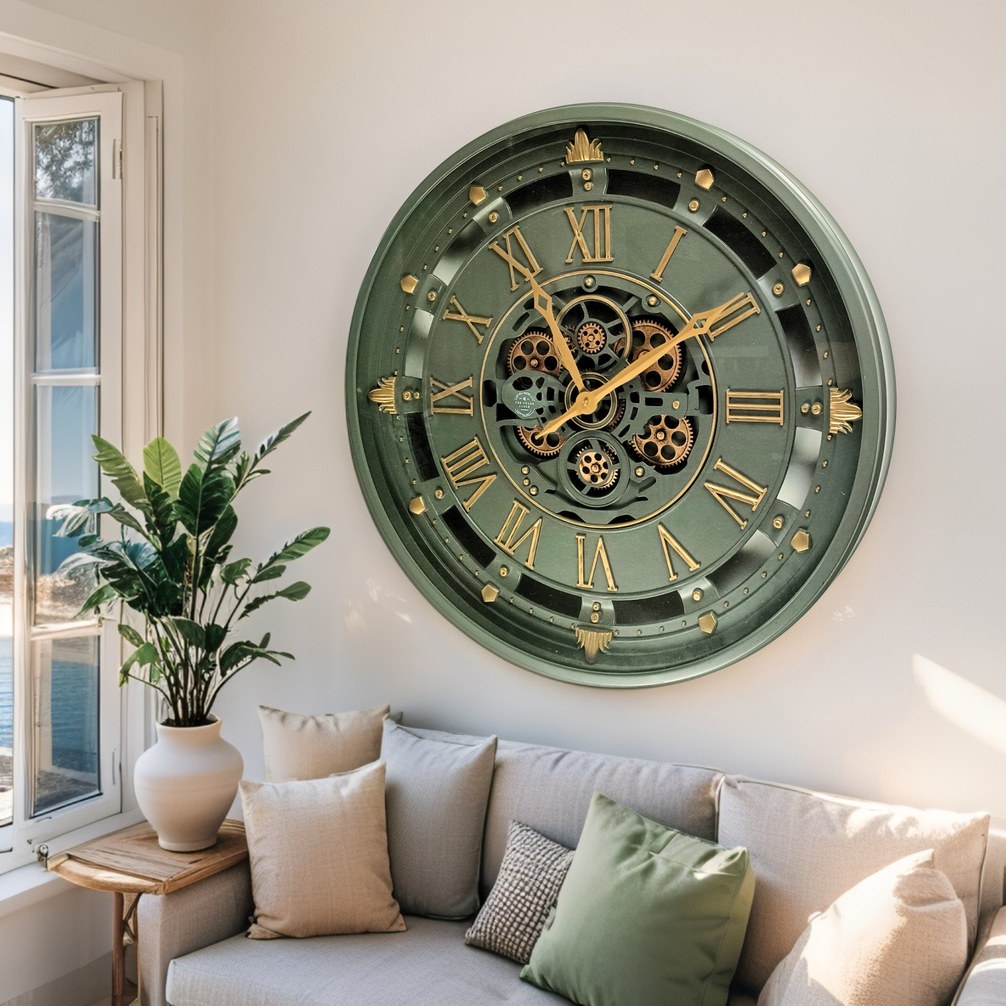 - معدات متحركة | إن حركة الترس تمنح المراقب شعوراً بالاسترخاء المنوم وتجعل الساعة عنصراً حياً في البيئة التي توضع فيها. ديكور رائع في أي غرفة.