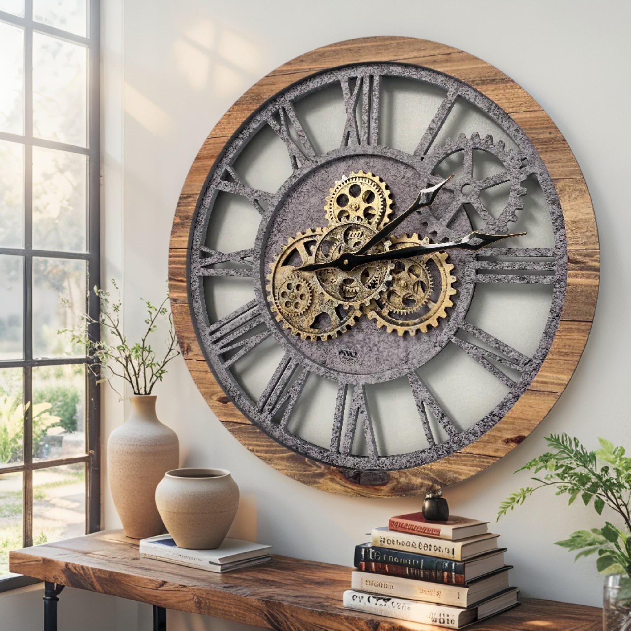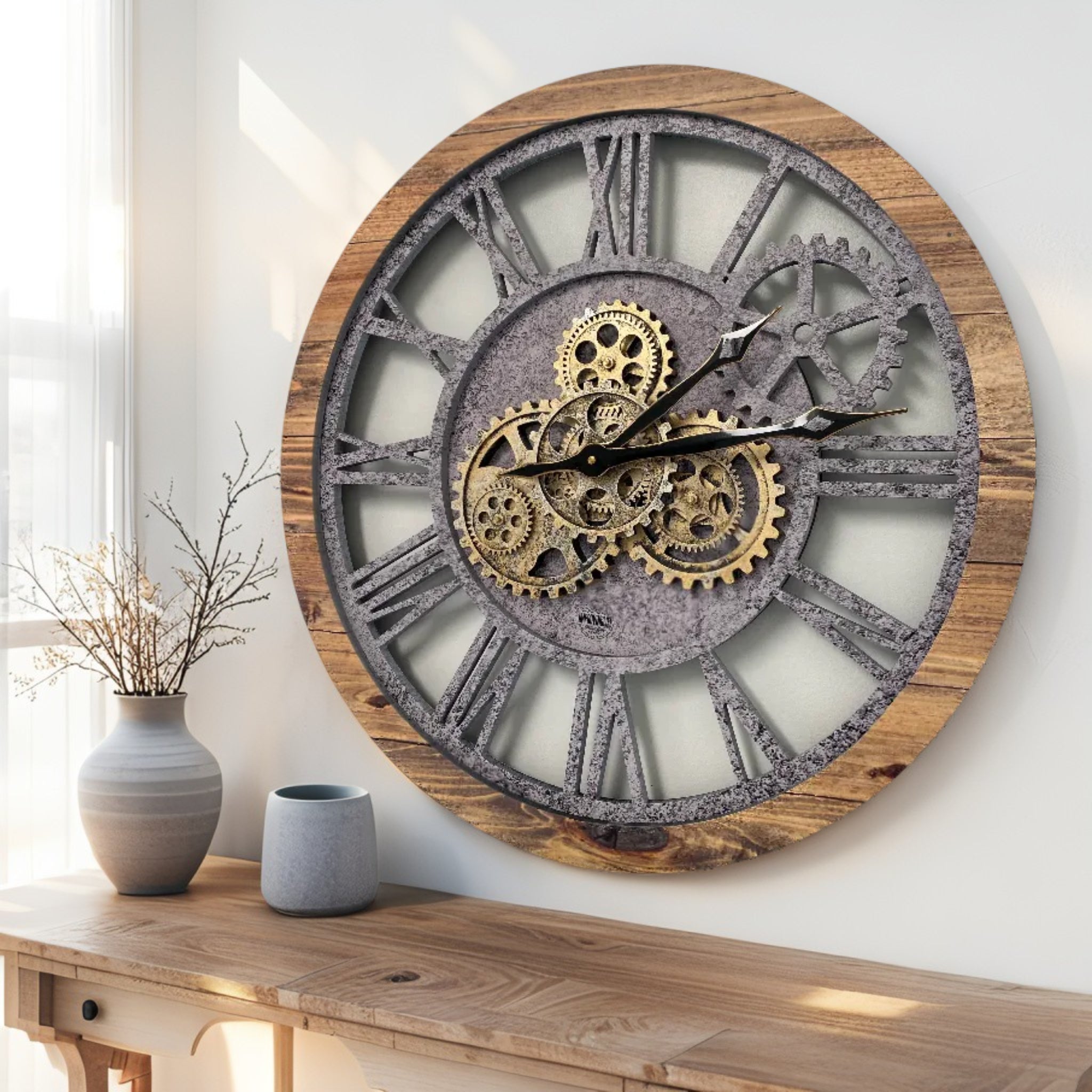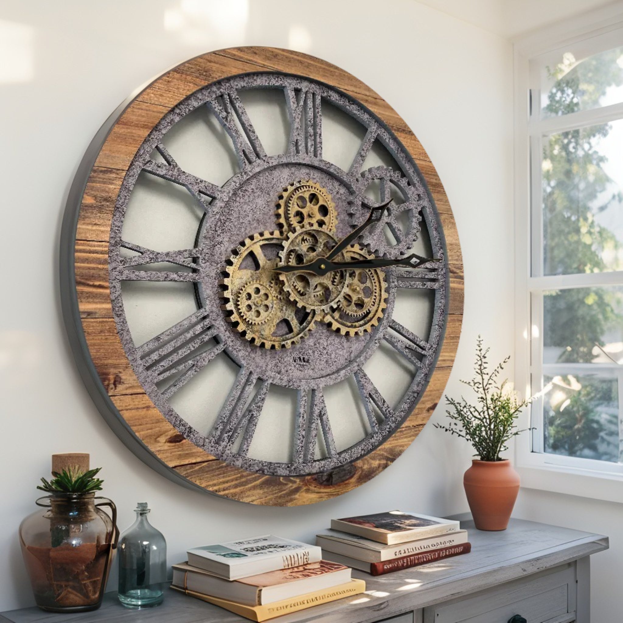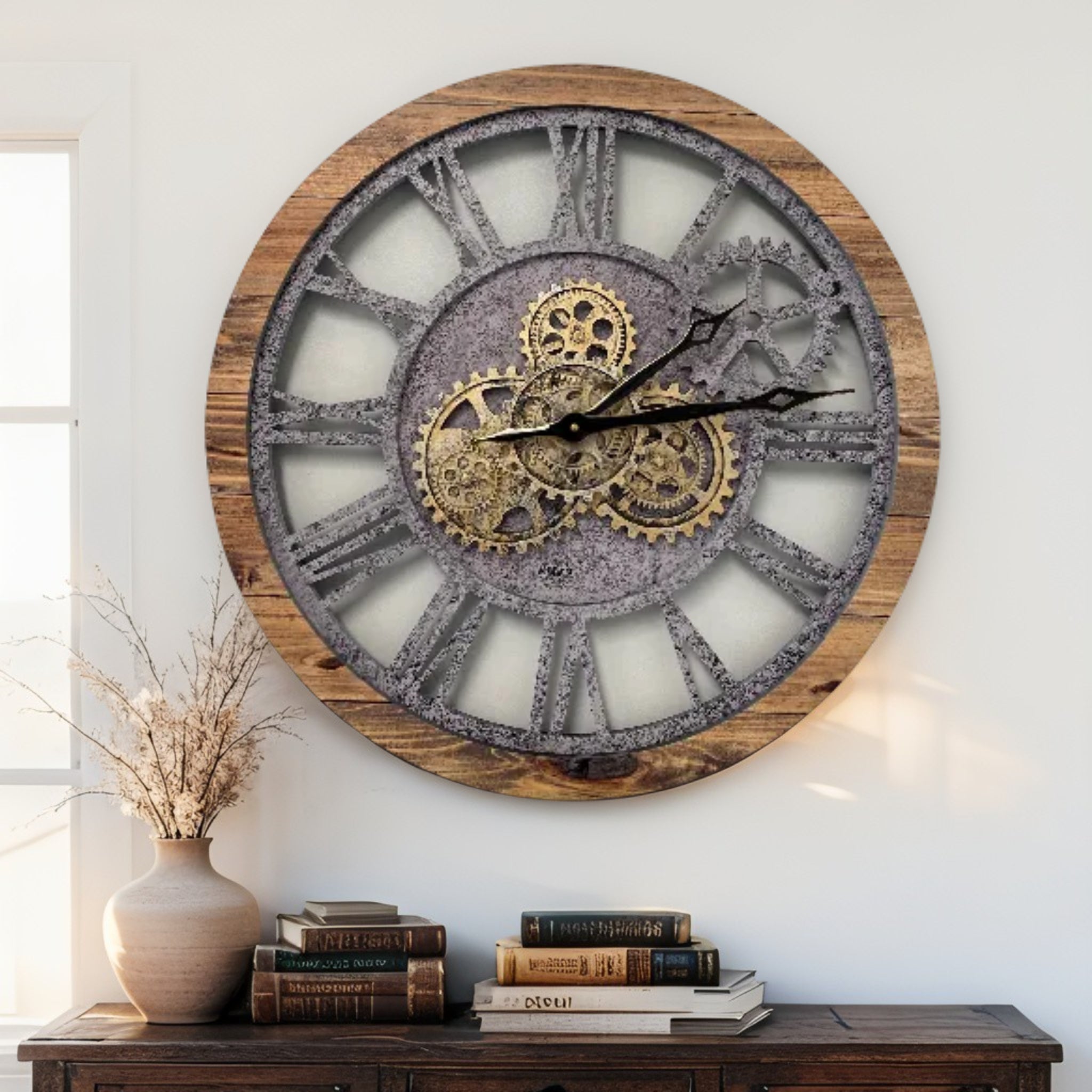- مثالية لجميع الغرف هذه الساعة الصناعية الفريدة من نوعها ذات التروس المتحركة الحقيقية هي الساعة المثالية لتزيين جدار في مطبخك أو غرفة المعيشة أو غرفة النوم أو الحمام أو غرفة العائلة أو غرفة المعيشة أو المكتب أو المطعم أو مكان العمل...... في أي مكان!