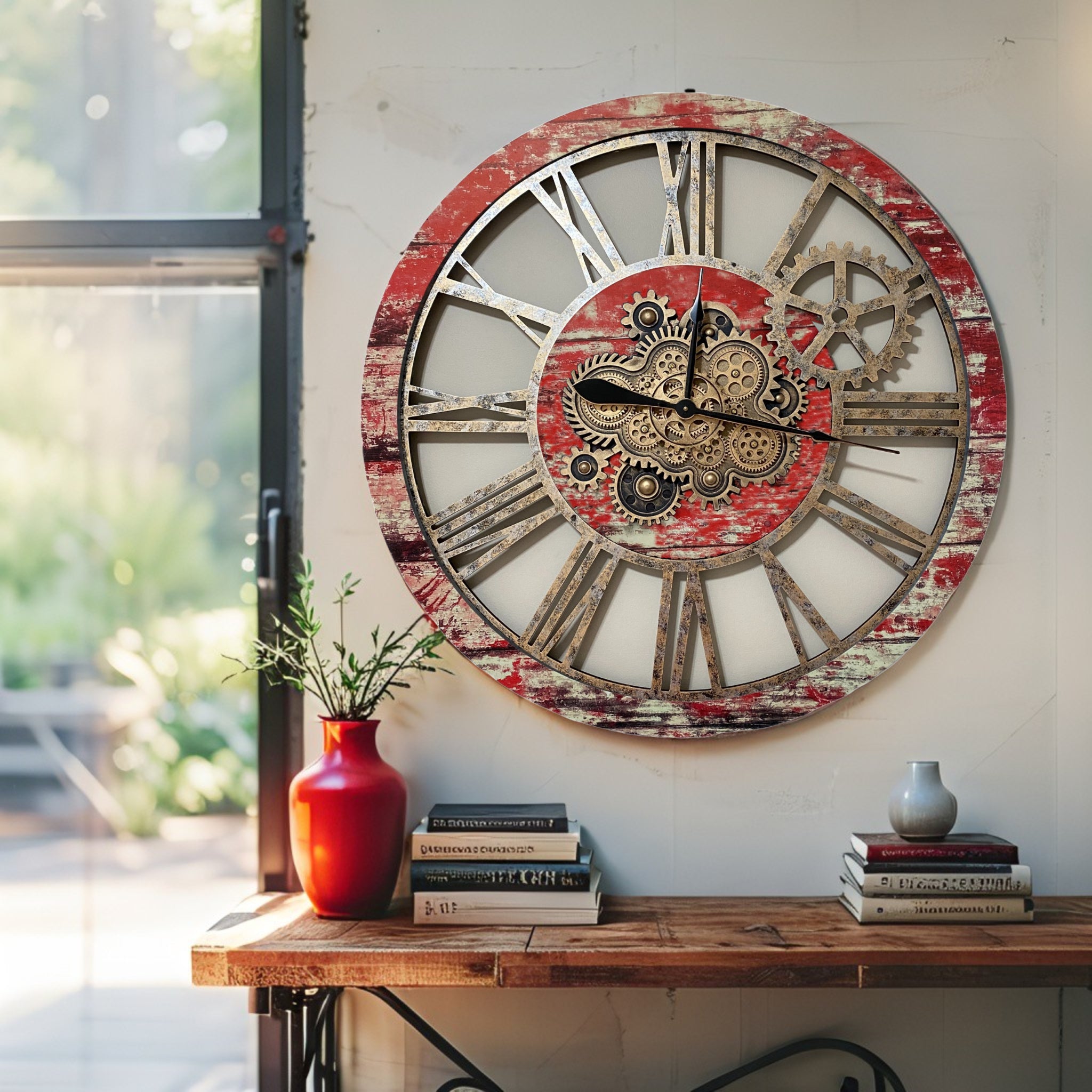 - مثالية لجميع الغرف هذه الساعة الصناعية الفريدة من نوعها ذات التروس المتحركة الحقيقية هي الساعة المثالية لتزيين جدار في مطبخك أو غرفة المعيشة أو غرفة النوم أو الحمام أو غرفة العائلة أو غرفة المعيشة أو المكتب أو المطعم أو مكان العمل...... في أي مكان!